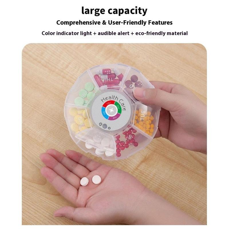 7-Day Smart Pill Organizer - 5-Alarm LED Reminder, Braille Markings & Waterproof Snap-Lock
