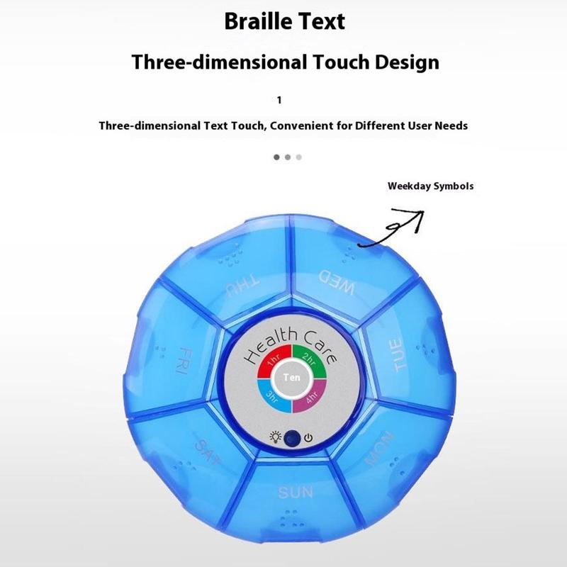 - Inclusive tactile design - Braille dots and raised weekday dividers guide users with limited vision.