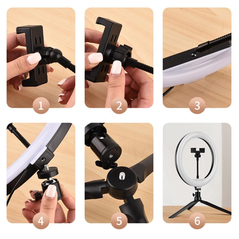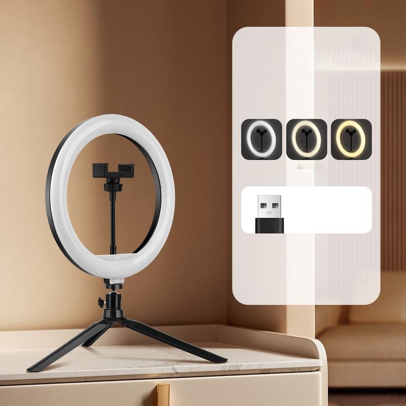 A26 Desktop 10" LED Selfie Ring Light Tripod Stand Phone Clip Mount Vlogging Video Light Live Broadcast Kit