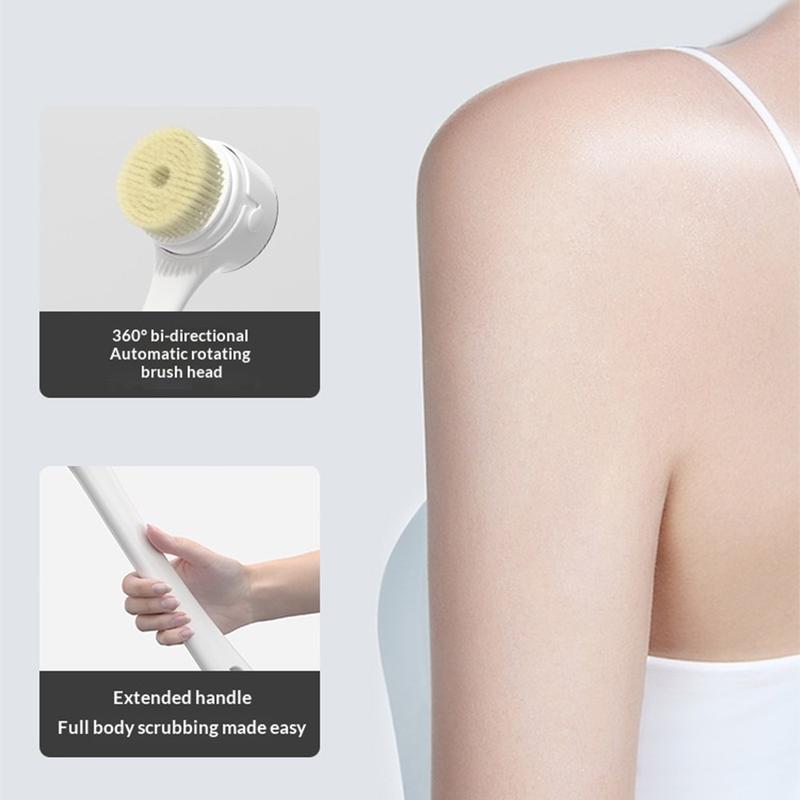 The extended handle makes it much easier to reach the back, legs, and other difficult areas without straining, making it ideal for everyday shower use. Its 360 dual-direction rotating brush head system, combined with three adjustable speed levels, gives you more control over your cleaning routine. Whether you prefer gentle daily cleansing, more intensive scrubbing, or a soothing massage effect, this electric bath brush adapts to different skin care needs.