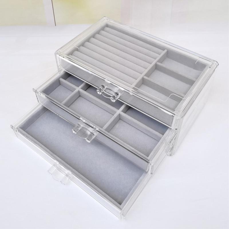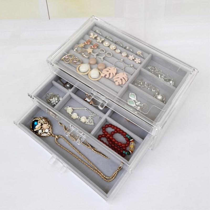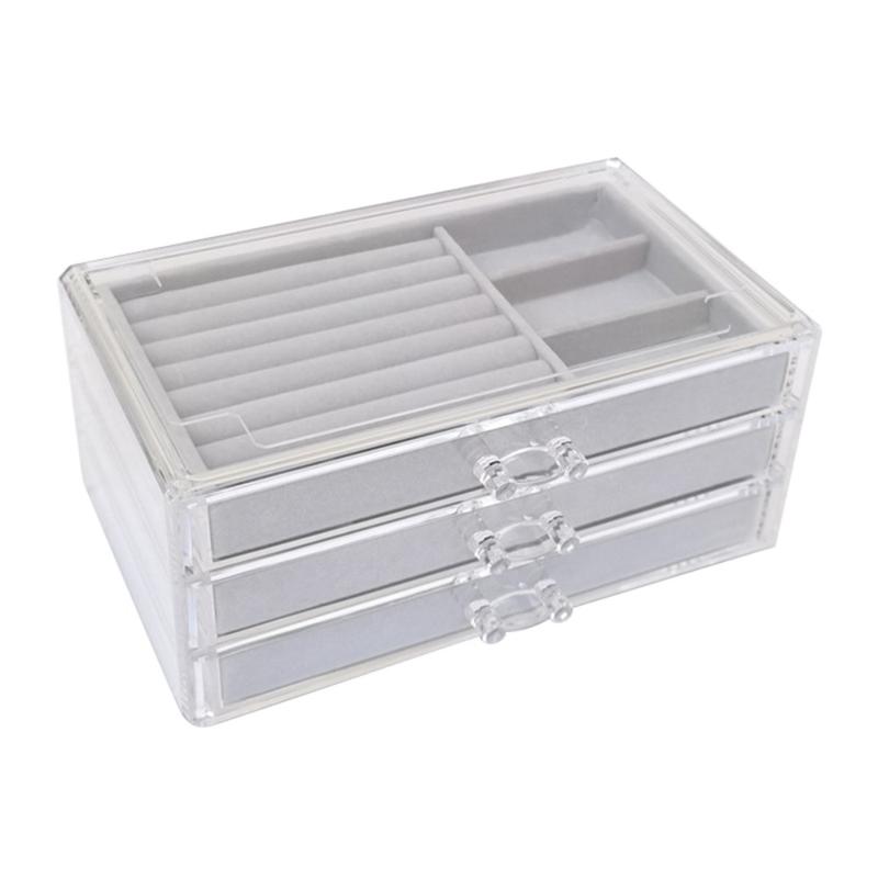 Keep your jewelry collection beautifully organized and protected with this elegant 3-layer jewelry organizer box. Crafted with premium acrylic, durable board, and lined with soft velvet, this jewelry box prevents scratches and damage while showcasing your jewelry collection clearly and attractively. With removable trays and drawers, this jewelry box adapts effortlessly to your storage needs.