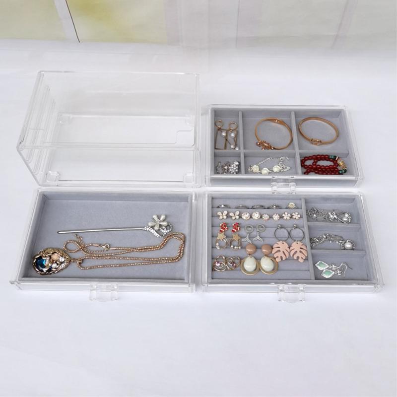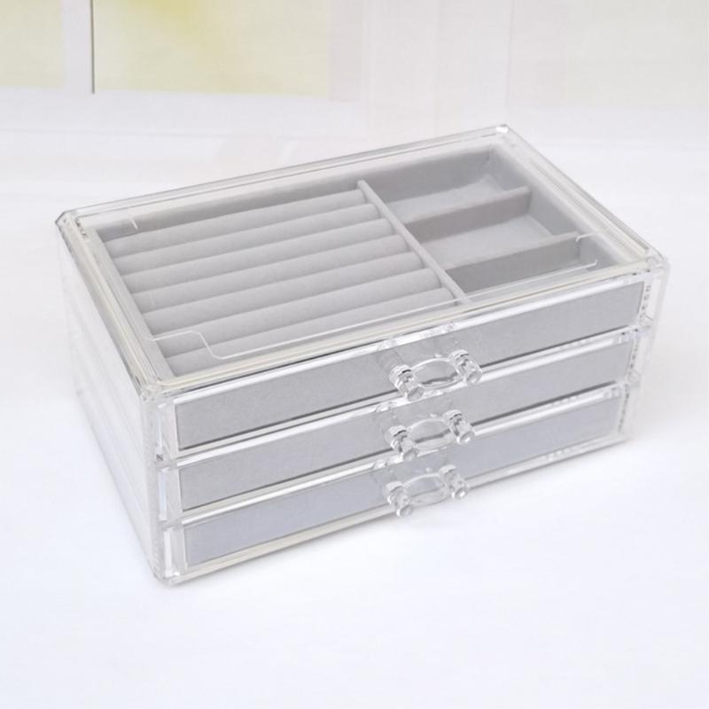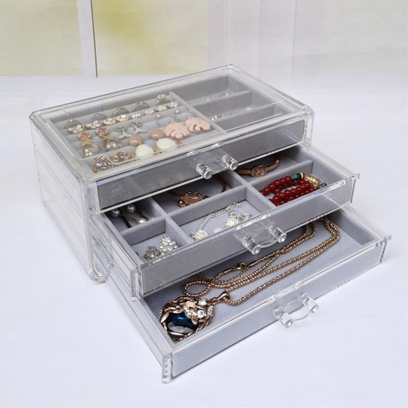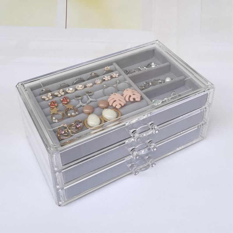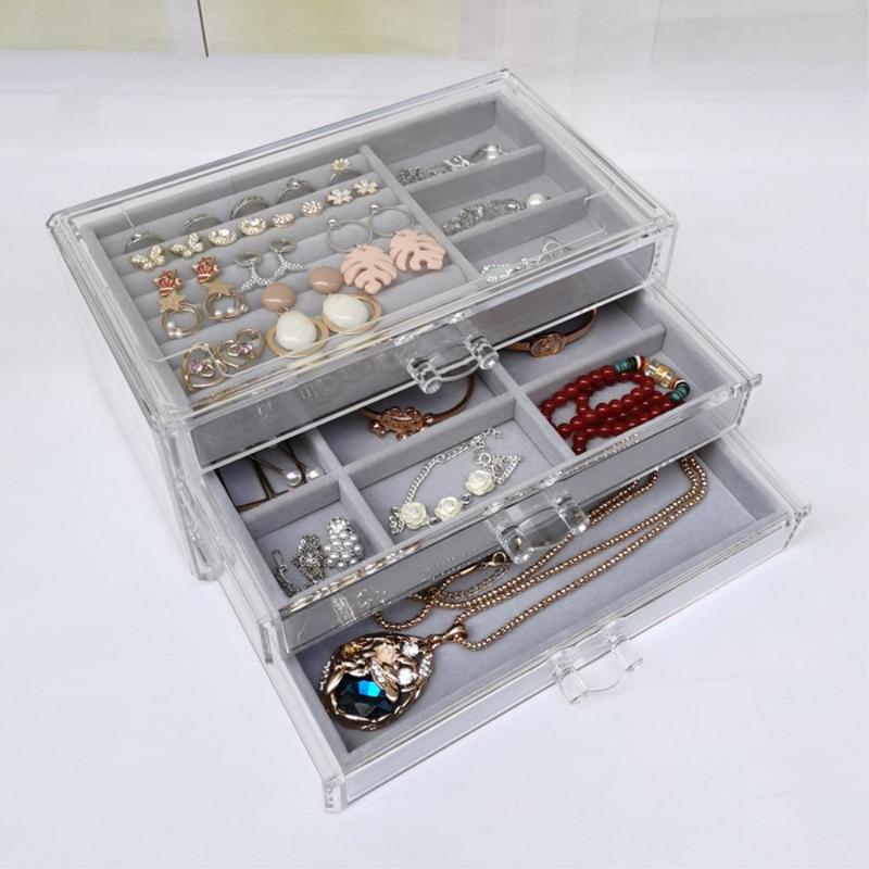3-Layer Jewelry Organizer Box with Removable Trays – Velvet-Lined Acrylic Jewelry Storage for Necklaces, Rings, Earrings & Makeup