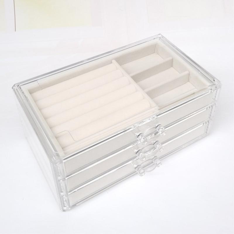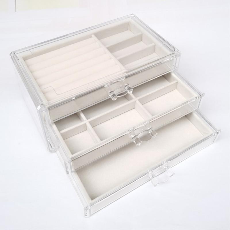 Keep your jewelry collection beautifully organized and protected with this elegant 3-layer jewelry organizer box. Crafted with premium acrylic, durable board, and lined with soft velvet, this jewelry box prevents scratches and damage while showcasing your jewelry collection clearly and attractively. With removable trays and drawers, this jewelry box adapts effortlessly to your storage needs.