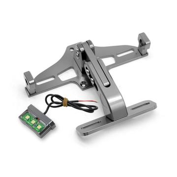 Adjustable CNC Aluminum Alloy Motorcycle License Plate Holder Bike Light Telescopic Bracket with LED Light - Titanium Grey