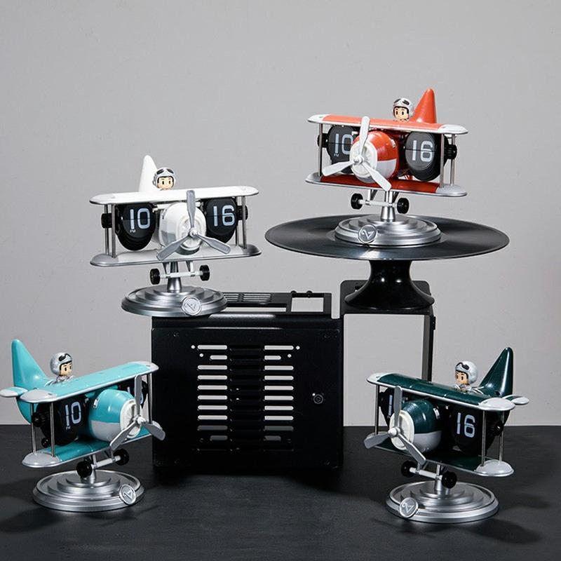 Airplane Flip Desk Clock – Automatic Mechanical Time Display