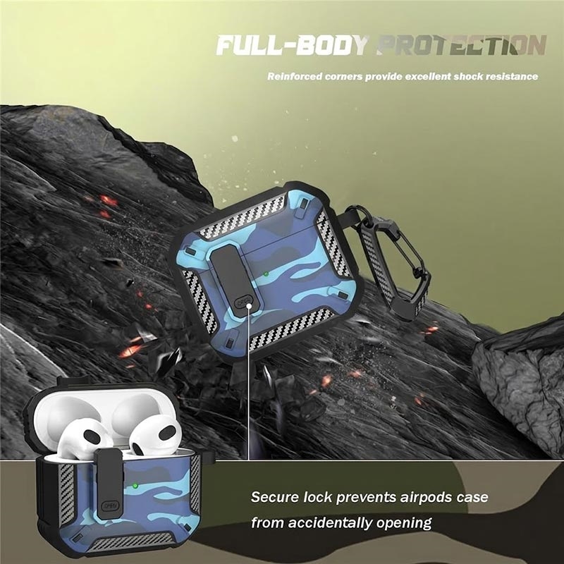 Camouflage Shockproof TPU Case with Carabiner for AirPods 4 - with Wireless Charging Support
