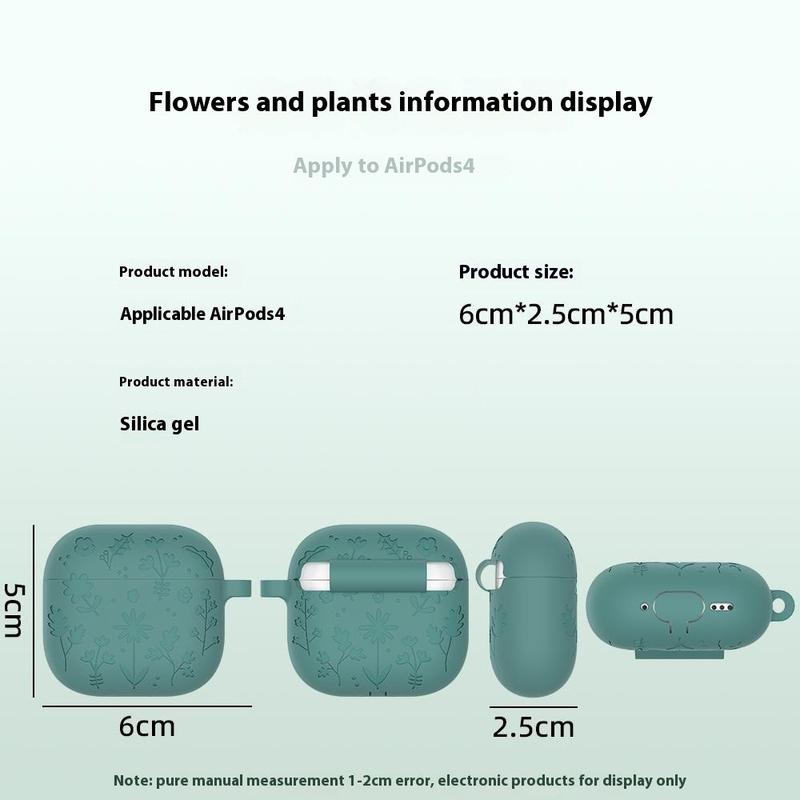 Add a touch of elegance and protection to your AirPods 4 with this Flower Pattern Liquid Silicone Case. Designed to perfectly fit your earbuds, this case is made from soft and durable liquid silicone, offering superior protection against scratches, drops, and everyday wear. The case with a delicate floral pattern, adding a stylish flair to your accessories. With an included hanging buckle, it's easy to carry your earbuds wherever you go.