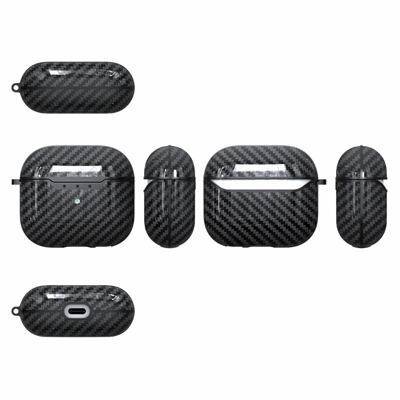 The shock-absorbing material with a carbon fiber texture provides essential protection against drops and impacts for your headphones while also giving them a cool new look. Upon that, this case for AirPods 4 comes with a practical carabiner for safer carrying.