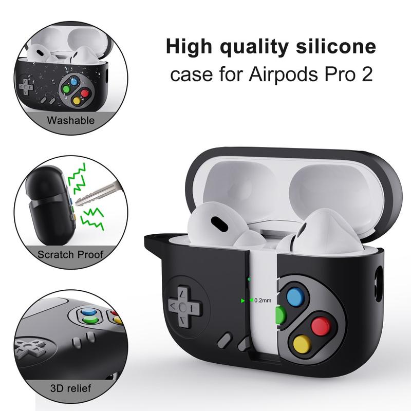Silicone Case with Carabiner for AirPods Pro 2 - Game Console Design