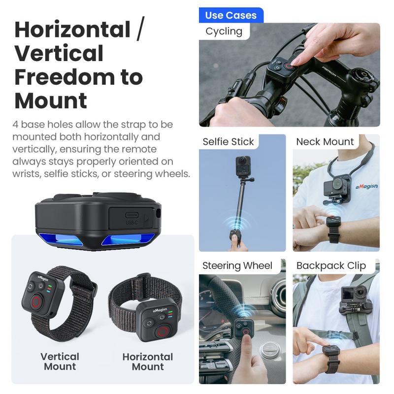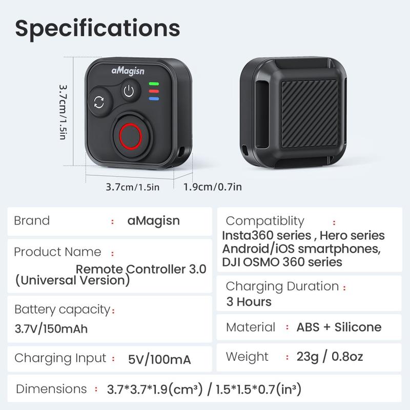 Control your shots without touching your camera with the AMAGISN Bluetooth remote control. Designed for action cameras and smartphones, this compact controller lets you start recording or take photos with one press, making it ideal for sports, travel, vlogging, and group photos. The silicone and ABS build offers a comfortable grip with anti-slip handling, while the wireless connection delivers stable performance for everyday shooting.