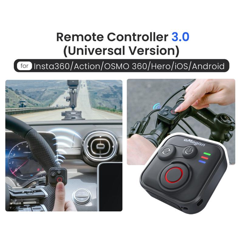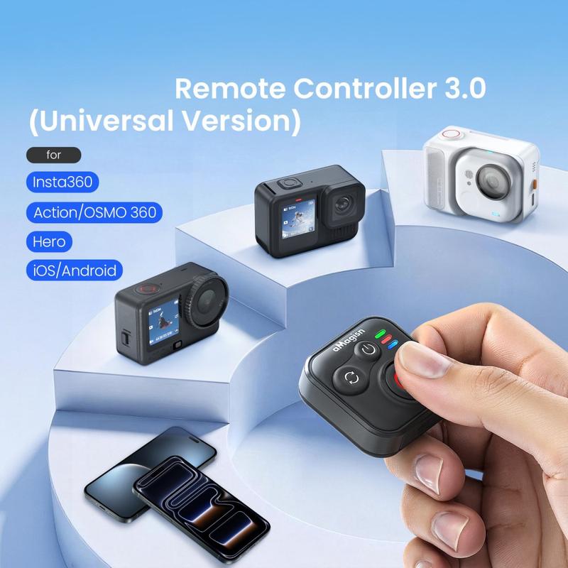 Amagisn Universal Bluetooth Remote Control for iOS and Android Phones, Insta360, GoPro Hero and DJI Action Cameras - One-Button Photo and Video Controller