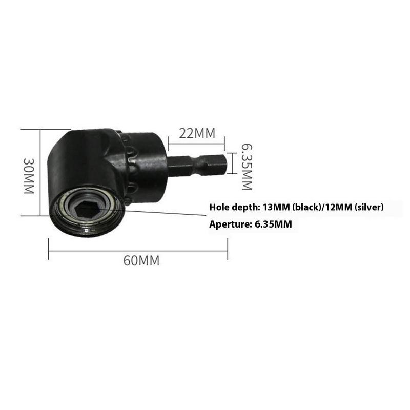 105° Corner Turner Drill Head - Right Angle Screwdriver Bit Adapter, Chrome Vanadium Steel, 1/4" Hex, 60 × 30 mm