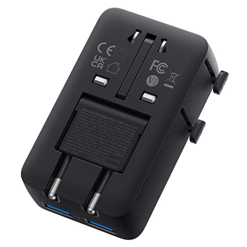 The Anker Nano Travel Adapter is the ideal compact power solution for global travelers. Designed to work in over 200 countries, it features four universal plug types—Type A, Type I, Type G and Type C—ensuring seamless compatibility wherever you go. With five total ports, including two USB-C and two USB-A outputs plus a universal AC outlet, it allows you to charge multiple devices at once, even during fast-paced travel.