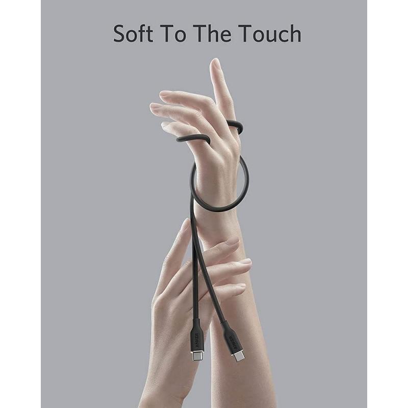 The Anker PowerLine III Flow USB-C to USB-C cable combines exceptional softness with outstanding durability. Finished with premium silicone, it feels remarkably smooth in your hand while staying flexible and tangle-free in everyday use. Designed for modern high-power devices, it supports fast charging up to 100 W, making it ideal for smartphones, tablets, and laptops. Whether at home, in the office, or on the move, this cable delivers reliable performance with a premium feel every time you plug in.