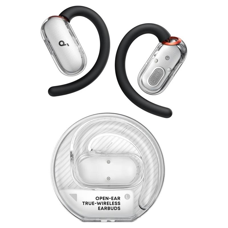 The Soundcore V40i open-ear headphones are designed for active lifestyles where comfort, awareness, and sound quality matter. With an innovative open-ear design and adjustable ear hooks, they sit comfortably outside the ear canal, letting you enjoy music while staying aware of your surroundings. The sleek, lid-free transparent charging case adds a modern touch and allows quick, effortless access wherever you are.
