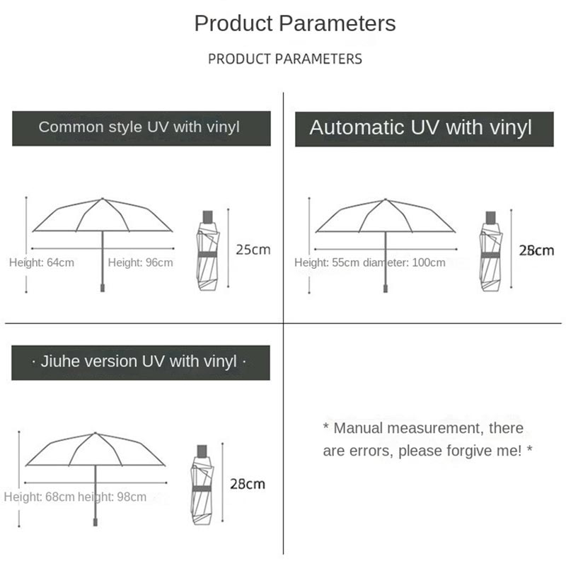 Anti-UV Compact Folding Umbrella - Portable Travel Sun & Rain Umbrella with 8 Ribs, Trifold Design, Storage Bag