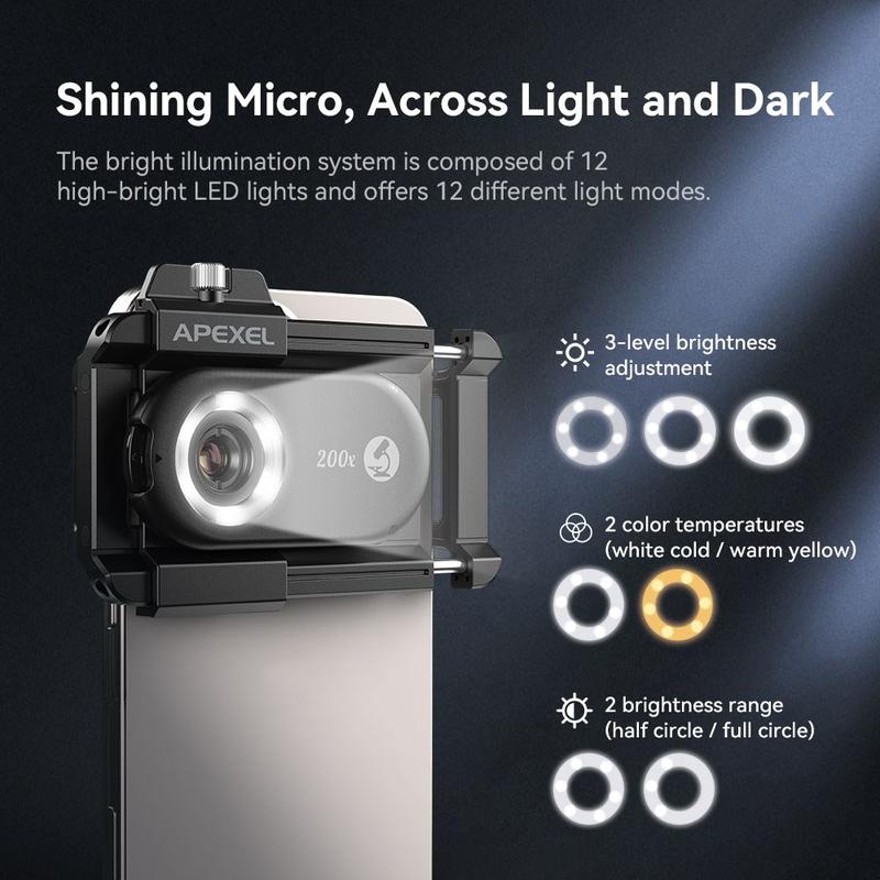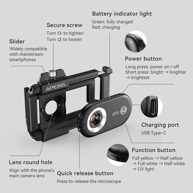 Explore the microscopic world with the Apexel APL-MS100 Smartphone Microscope, featuring high-definition magnification, versatile lighting, and a user-friendly design. Perfect for hobbyists, students, and professionals, transform your smartphone into a powerful observation tool and discover the unseen details of everyday objects.