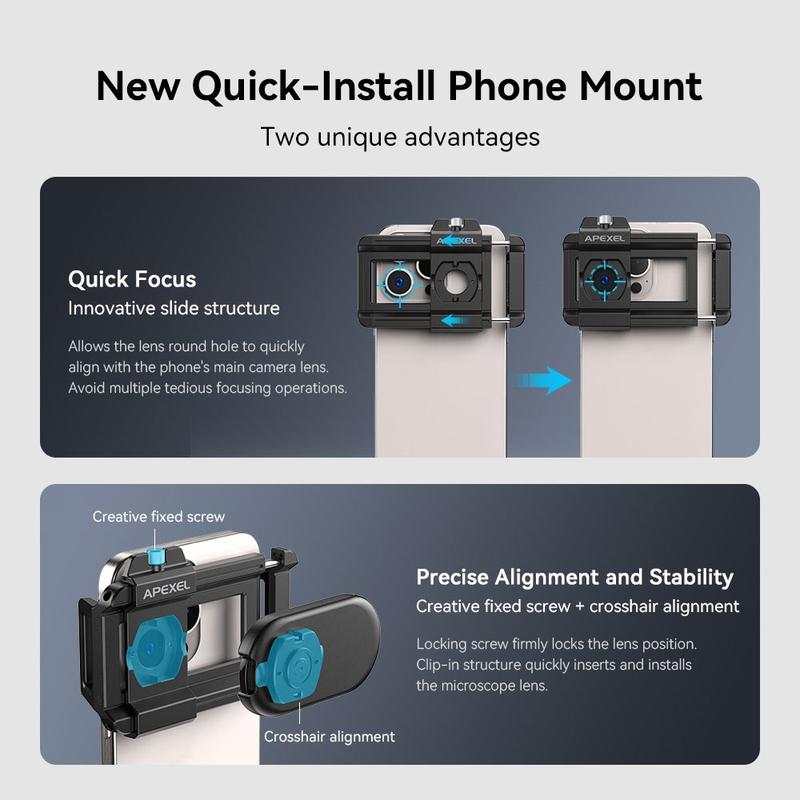 - Innovative Quick Focus Mechanism: The innovative slide structure and precise alignment system, along with a fixed screw and crosshair alignment, enable quick and smooth one-second alignment for sharp and detailed image capture.