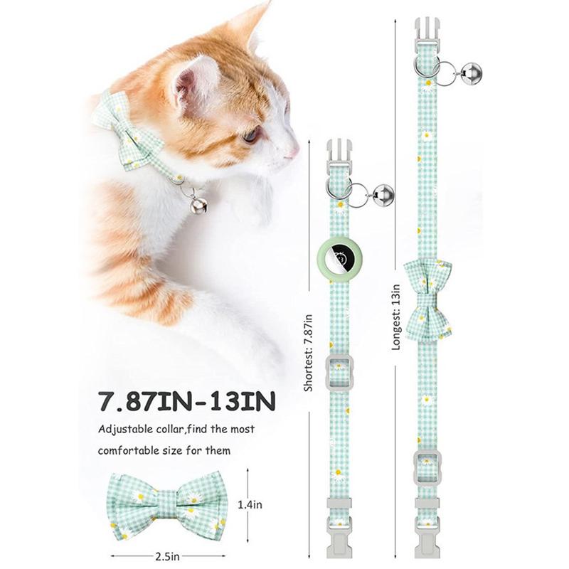 Silicone Case with Daisy Pattern Pet Collar and Bow for Apple AirTag 1, AirTag 2