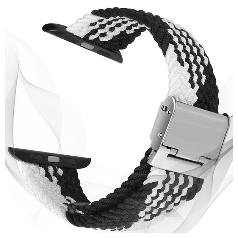 Customize your Apple Watch Series Ultra 3/2/Ultra/11/10/9/8/SE 3/(2022)/7/SE/6/5/4/3/2/1 with this braided colorful cloth strap. The strap is adjustable with a clamp that perfectly fits different wrist widths. The fibers are sweat-resistant.