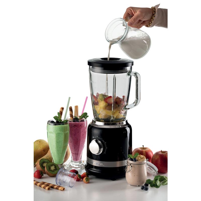 The Ariete Moderna Blender with a 1.5L glass cup is the ideal kitchen appliance for creating a variety of drinks and recipes. With its powerful 1000W motor and 4 stainless steel blades, it effortlessly blends smoothies, crushes ice, and purees vegetables. The blender offers 4 speeds plus a Pulse function, allowing you to customize the texture of your ingredients. The glass cup is both durable and convenient, featuring a measuring scale and a removable cap for adding ingredients mid-blend.