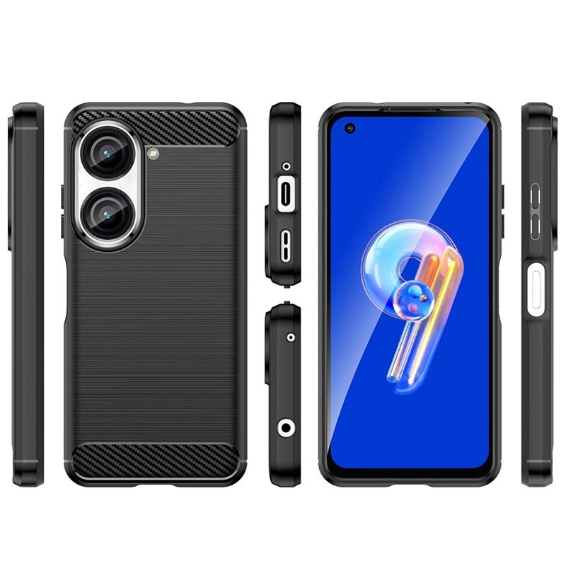 Asus Zenfone 10 Brušena TPU Zaštitna Maska - Karbonska Vlakna - Crna