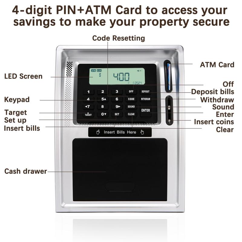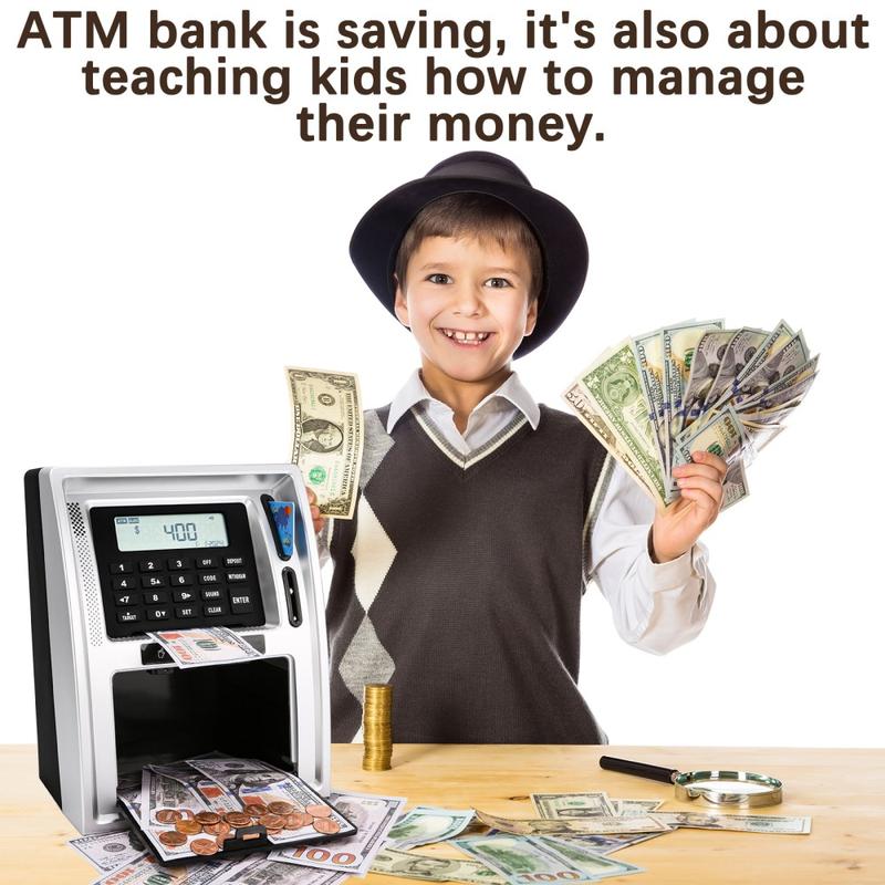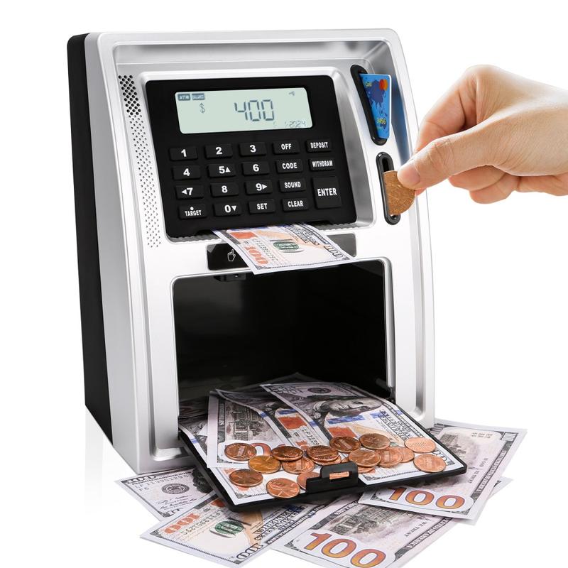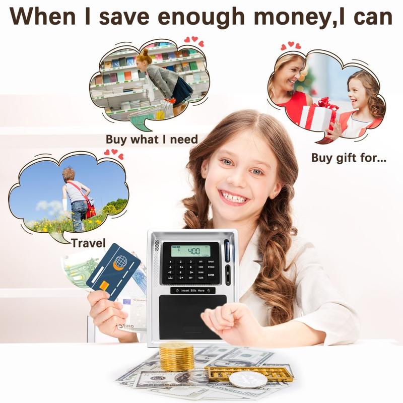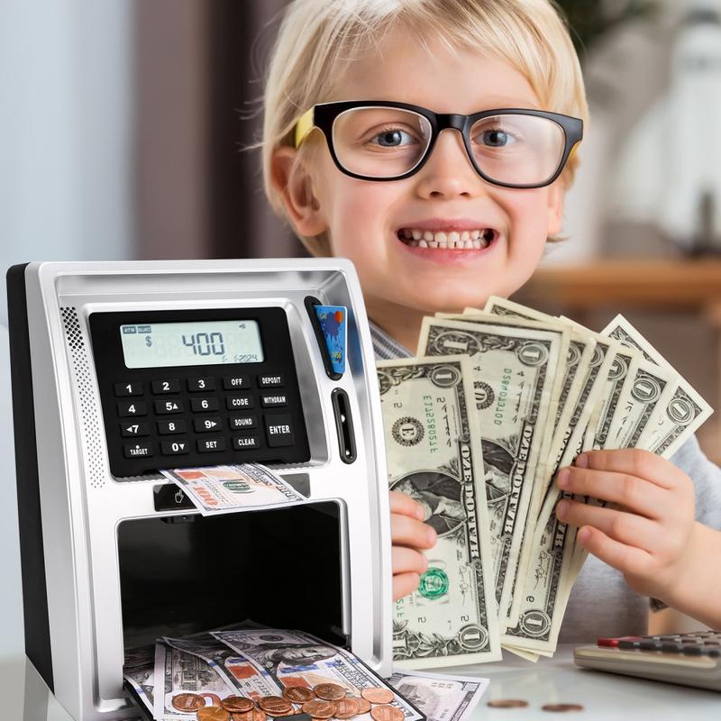 ATM-Style Smart Piggy Bank for Kids - Educational Toy, Automatic Bill and Coin Handling