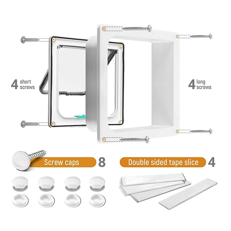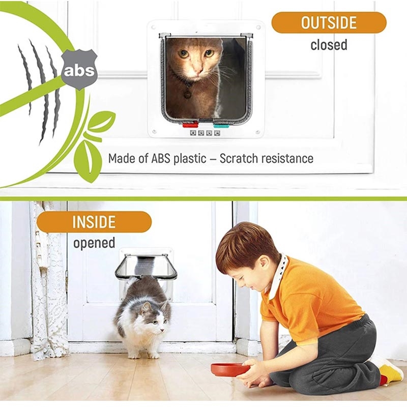 Enhance your pet's independence and convenience with the Lockable Pet Screen Door, designed for cats and small dogs. This durable ABS plastic door features a 4-way locking system, allowing you to control your pet's access with ease. Suitable for installation in walls or doors up to 5 cm thick, it provides a safe and secure passage for your furry companions.