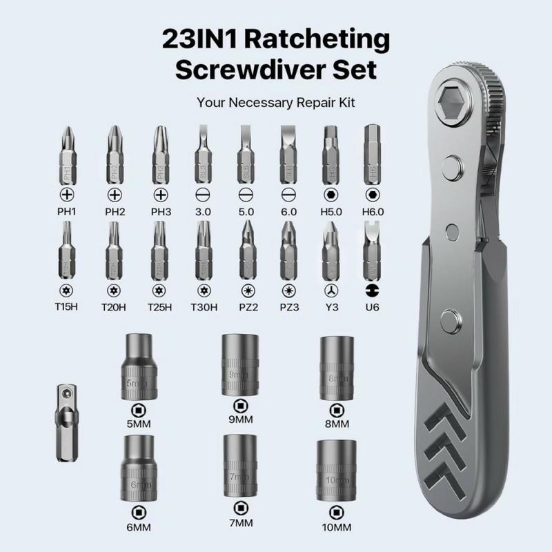 - 1 x 23-in-1 Ratcheting Screwdriver Set