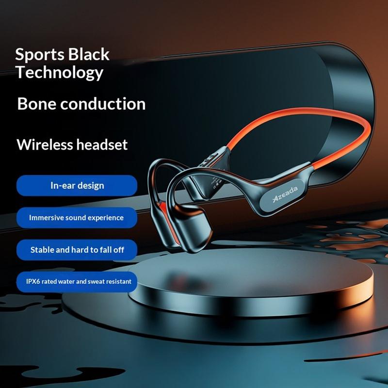 The AZEADA AZ-BN03 bone conduction OWS earphones are IPX6 waterproof open-ear wireless earphones with Bluetooth 5.3, a secure ergonomic fit, and memory silicone comfort. With up to 8 hours of music playback, Type-C charging, and a lightweight design, they are ideal for workouts, commuting, outdoor activity, and everyday hands-free listening.