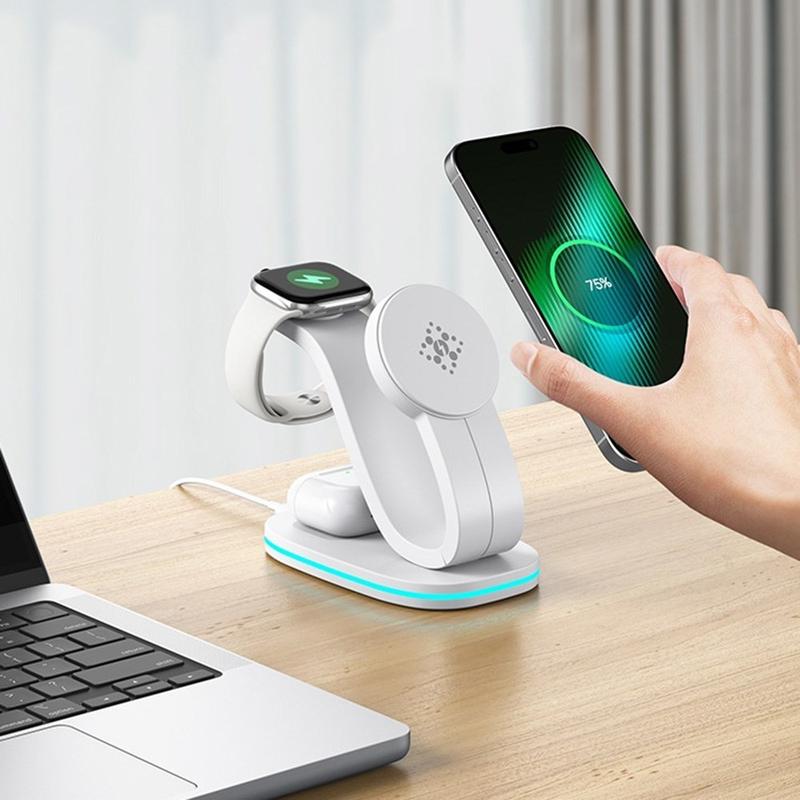 B-28 3-in-1 Wireless Charger with Night-Light - Power Phone, Watch & Earbuds in One Spot
