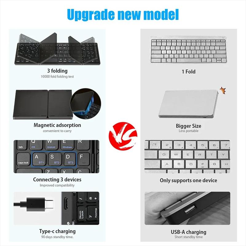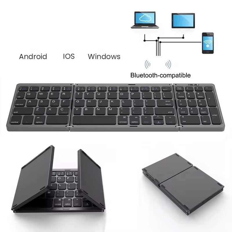 Work more comfortably wherever you are with the B089 portable tri-fold Bluetooth keyboard. Designed for flexible everyday use, this compact wireless keyboard opens into a practical full-size typing layout with a dedicated numbers area, then folds down into a smaller travel-friendly format when not in use. It is an excellent choice for mobile work, study, business trips, commuting, and home office setups.