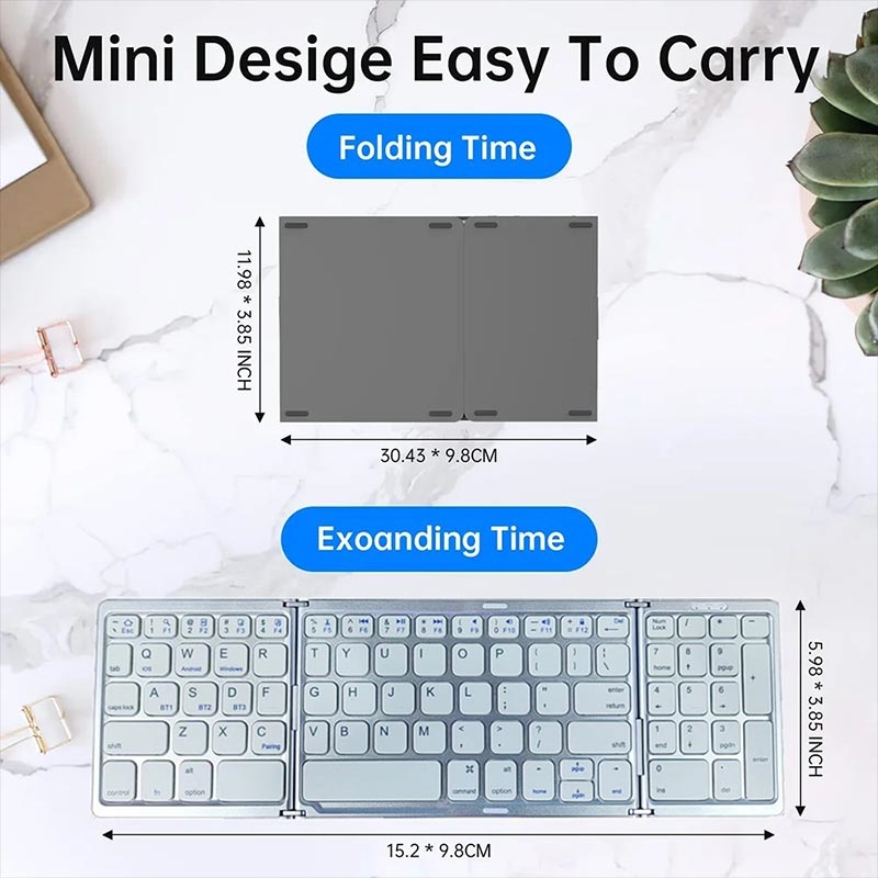 Work more comfortably wherever you are with the B089 portable tri-fold Bluetooth keyboard. Designed for flexible everyday use, this compact wireless keyboard opens into a practical full-size typing layout with a dedicated numbers area, then folds down into a smaller travel-friendly format when not in use. It is an excellent choice for mobile work, study, business trips, commuting, and home office setups.