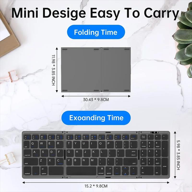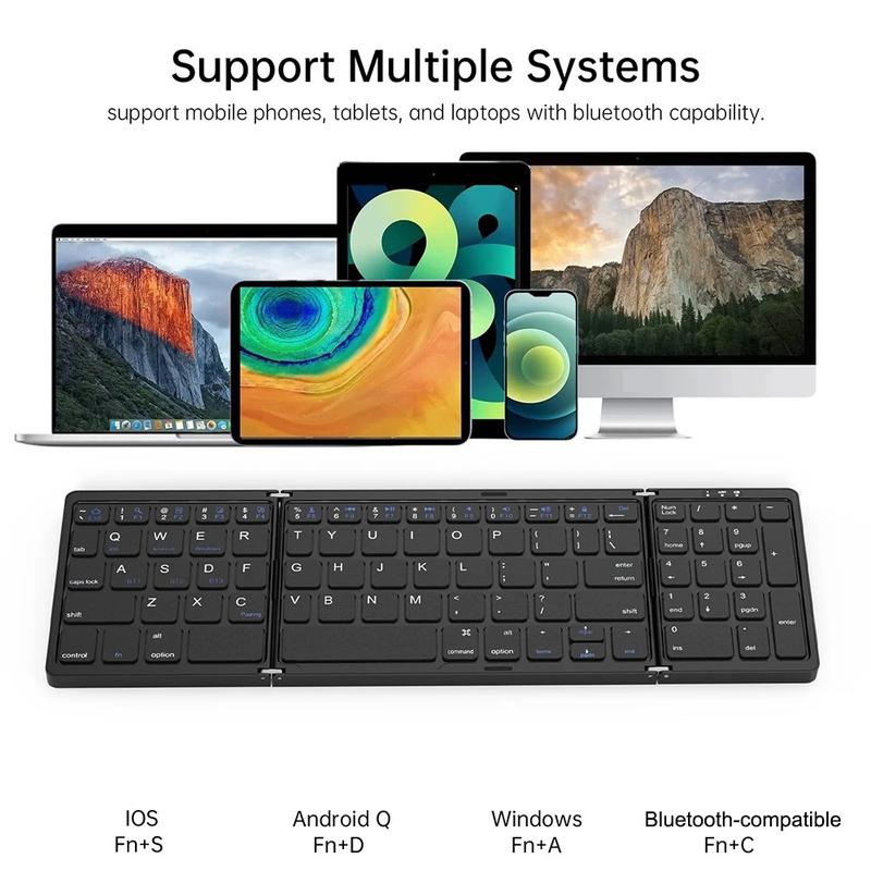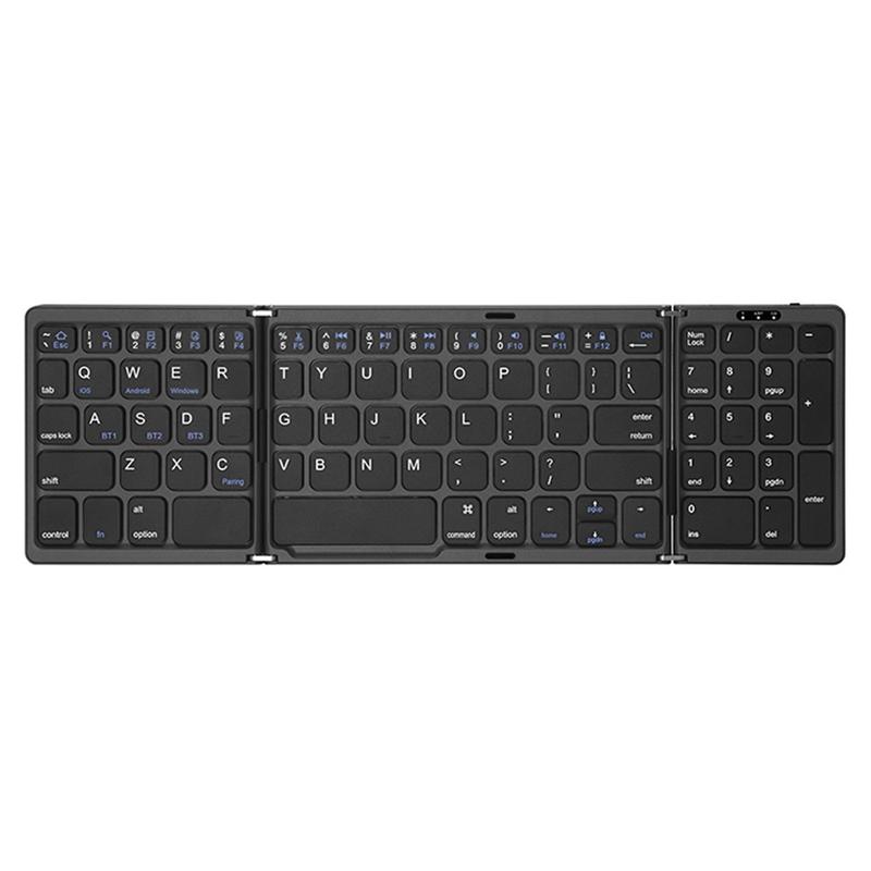 Work more comfortably wherever you are with the B089 portable tri-fold Bluetooth keyboard. Designed for flexible everyday use, this compact wireless keyboard opens into a practical full-size typing layout with a dedicated numbers area, then folds down into a smaller travel-friendly format when not in use. It is an excellent choice for mobile work, study, business trips, commuting, and home office setups.
