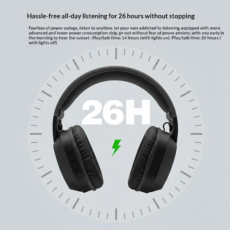 Level up your music and gaming sessions with the B500 wireless over-ear headphones—built for deep bass, all-day comfort, and a style-forward RGB look. Powered by Bluetooth-compatible 5.4, the connection stays stable with smooth audio for everyday listening, mobile gaming, and streaming. When you want a more immersive vibe, switch on the RGB lighting; when you want maximum runtime, turn the lights off and keep the music going for up to 26 hours.