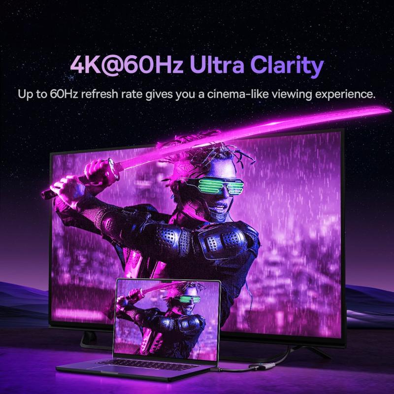 - 4K@60Hz Ultra HD Output: Delivers vivid, detailed visuals for gaming, streaming, and presentations.