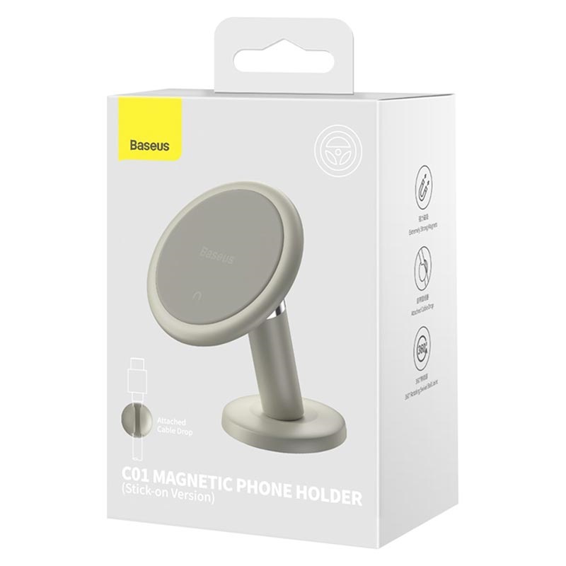 - Universal stick-on magnetic car holder with cable clip by Baseus