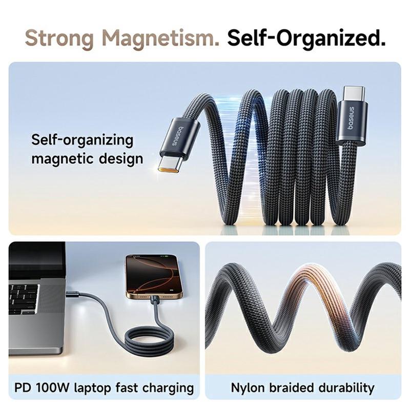 Upgrade your charging routine with the BASEUS Dynamic 4 Pro Type-C to Type-C Cable. Featuring a clever magnetic self-organizing design and 100W power delivery, this cable provides rapid, hassle-free charging for laptops, smartphones, and more. The durable nylon braided construction ensures long-lasting reliability, while the compact 1-meter length is perfect for both travel and everyday use.