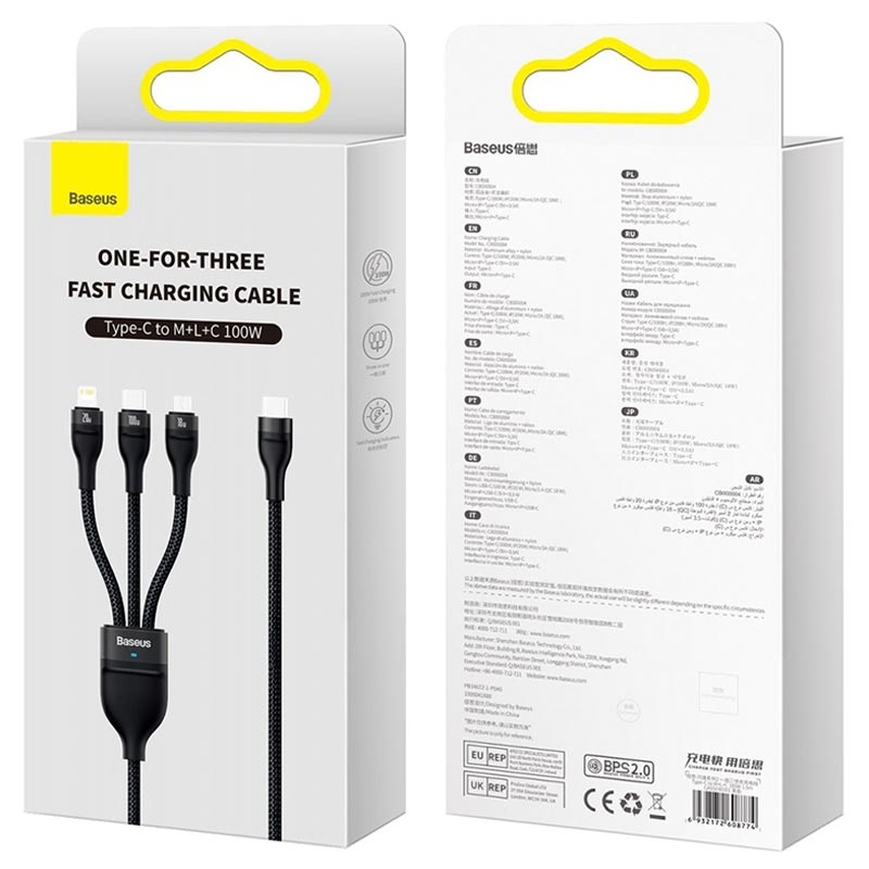 - High-quality Baseus Flash Series II 3-in-1 fast charging cable