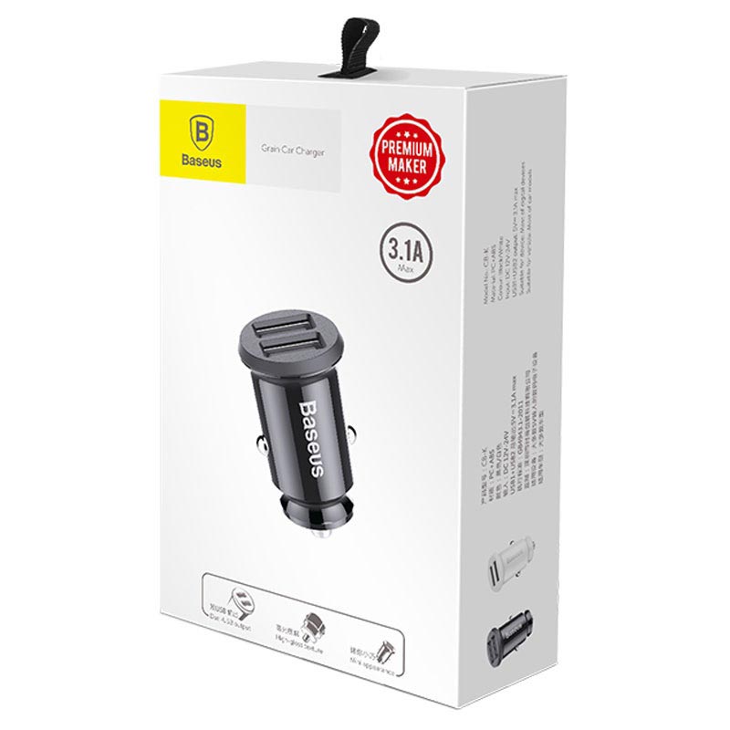 Nova generacija Baseus Grain smart auto-punjača može da se pohvali kompaktnim kućištem i dovoljnom snagom za istovremeno punjenje dva uređaja. Ovaj Baseus Grain mini auto-punjač nudi dva USB porta sa plavim LED indikatorom za komfornu upotrebu u uslovima slabe osvetljenosti. Oba USB porta garantuju maksimalnu jačinu od 2.1A of, kombinovano 3.1A.