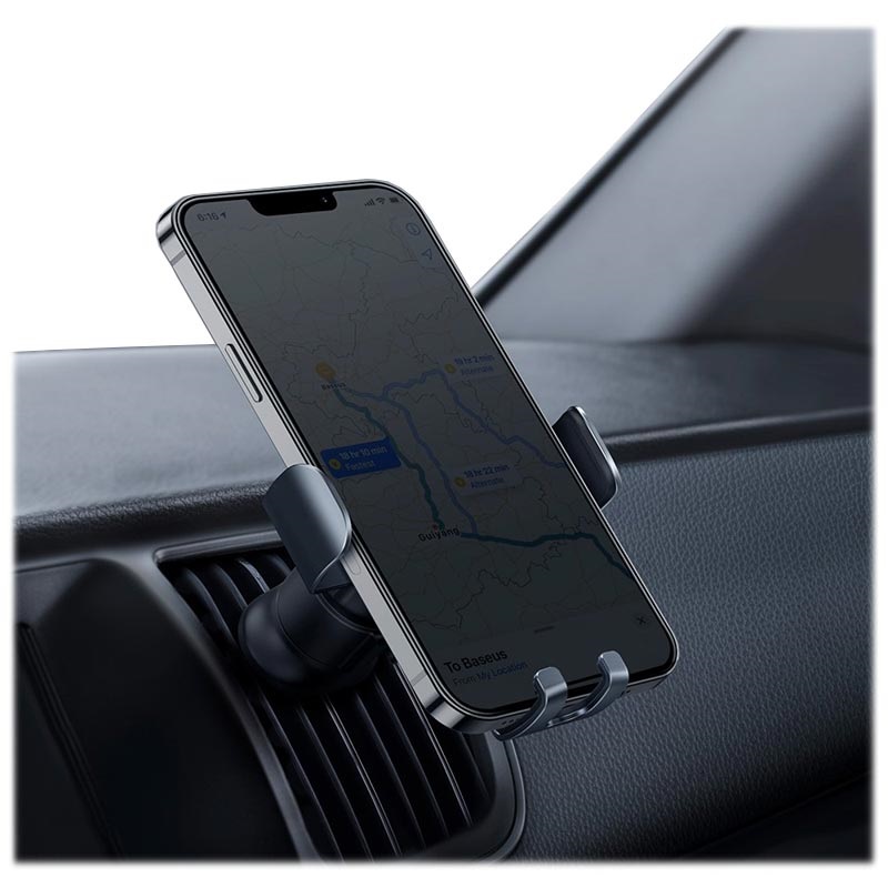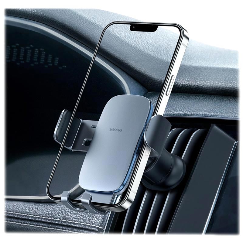 Keep your smartphone stable and secured while driving, safe from falls, and easily reachable at every moment, providing better focus on the road. Baseus Metal Age II is made of aluminum alloy and ABS materials, designed to attach to the car's air vent till mechanical jaws hold your smartphone without moving, even you drive off-road.