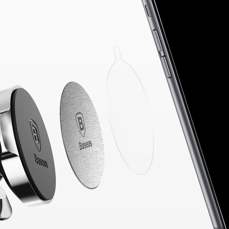 The Baseus Magnet Iron Suit is a convenient set of 2 round metal plates that can be easily attached to the phone's housing or case. These plates enable the use of magnetic car holders, providing a secure and convenient way to mount your phone while driving. The package includes a naked accessory for minimal interference with the weight and thickness of the equipment, as well as a variant with an elegant leather cover. The small, light, and perfectly matched plates are designed to work seamlessly with Baseus magnetic holders, providing a versatile and reliable solution for hands-free phone use in the car.