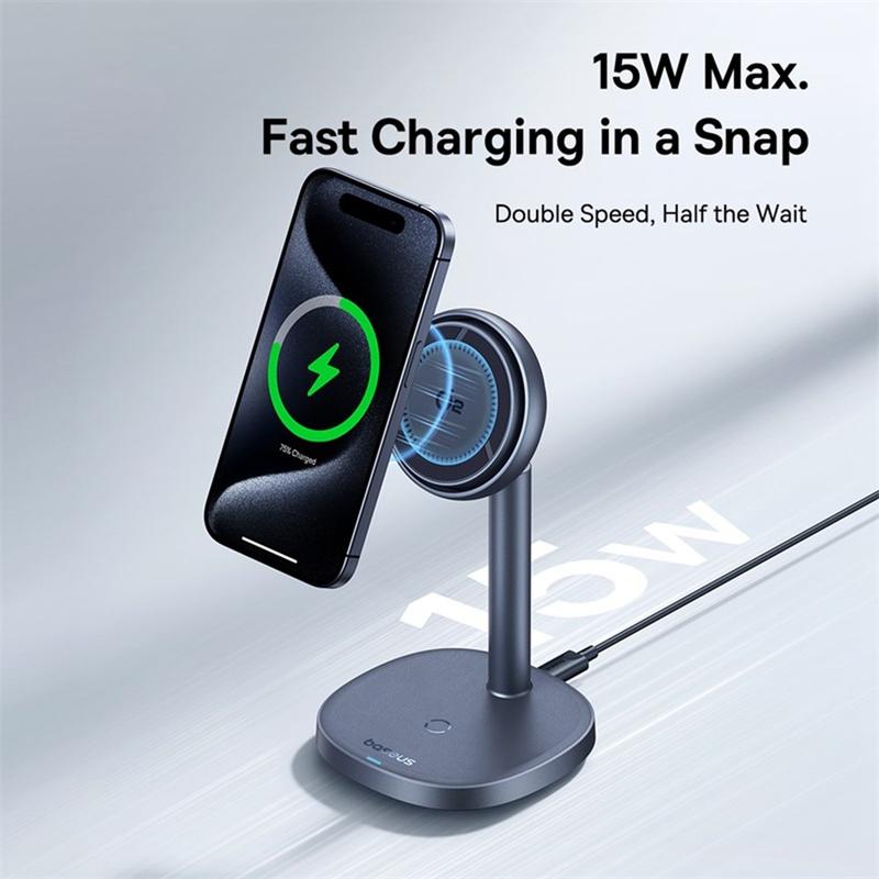 Baseus Orbit 2 Pro Air-Cooled 2-in-1 Qi2 Magnetic Wireless Charging Stand for Mobile Phones and TWS Earphones - 20W