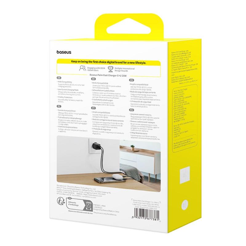 Baseus Palm 20W Fast Charger with 60W Type-C Cable - USB-C, USB-C, EU plug