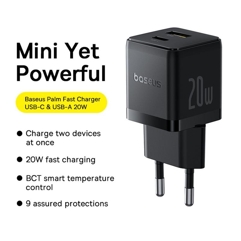 Transform your charging routine with the BASEUS Palm Dual-Port 20W Fast Charger and experience safe, swift power delivery for all your devices.