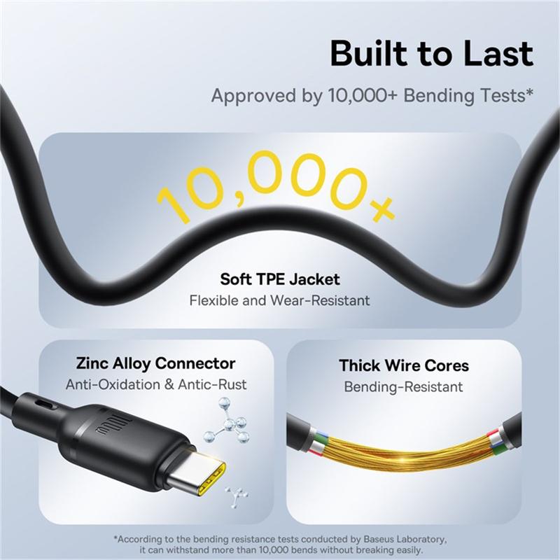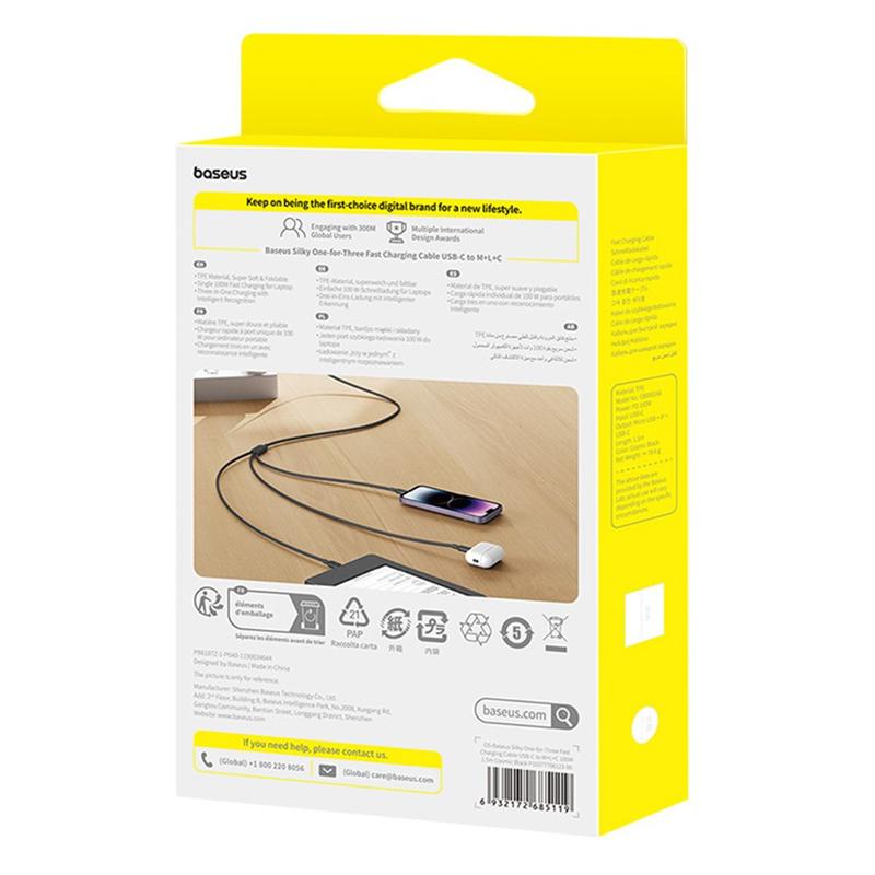 Baseus Silky 3-in-1 USB-C to Lightning, USB-C, MicroUSB Fast Charging Cable – 100W/1.5m