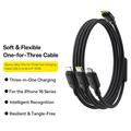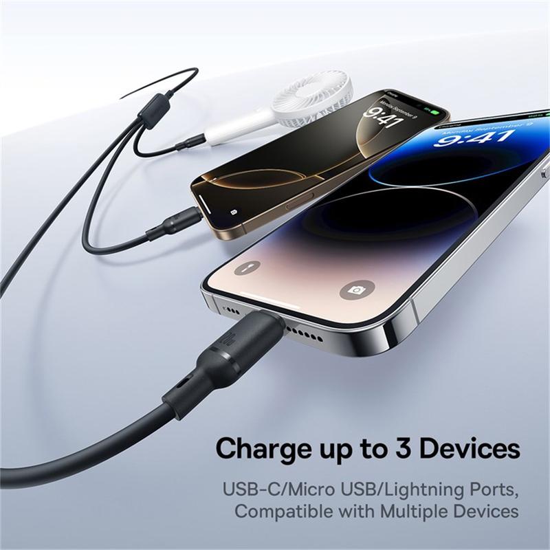 The Baseus Silky 3-in-1 Fast Charging Cable offers unparalleled convenience and efficiency. Its ability to charge multiple devices with different connectors simultaneously makes it an essential accessory for tech-savvy individuals seeking to streamline their charging solutions.