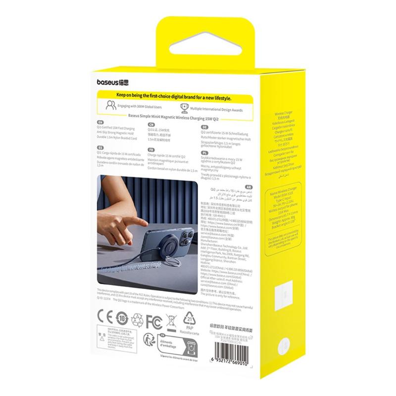 Combining fast charging and flexible device placement, the BASEUS Simple Mini4 ensures hassle-free power management. The strong magnetic attachment reduces misalignment issues, while the adjustable stand keeps your phone easily accessible and viewable at a comfortable angle. Whether for work, entertainment, or staying connected throughout the day, this Qi2-certified charger delivers both efficiency and convenience.