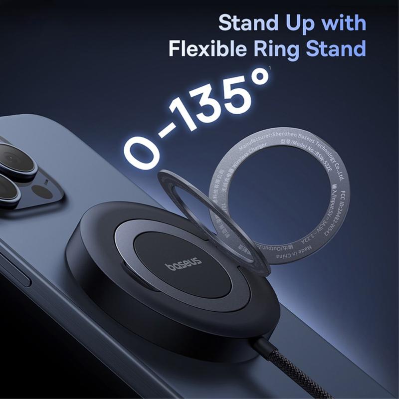 Upgrade your charging experience with the BASEUS Simple Mini4 Magnetic Qi2 Wireless Charging Stand. Boasting official Qi2 certification and a flexible ring stand, this versatile charger securely powers up your phone while keeping it at an ideal viewing angle.