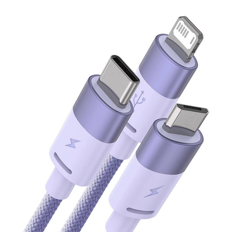 The Baseus StarSpeed 3-in-1 USB cable is a versatile and durable charging and data transfer solution. With USB-C, micro USB, and Lightning connectors, this cable is compatible with a wide range of devices, allowing you to charge up to 3 devices at the same time. It supports fast charging with a maximum output current of 5V / 3.5A and enables data transfer speeds of up to 480 Mbps using the Lightning connector. The cable is made of durable and wear-resistant materials, featuring a durable nylon braid that prevents tangling and is resistant to breakage and repeated bending. It also includes a practical Velcro fastener for easy storage. Equipped with a smart BPS chip and tin-plated copper wires, the cable offers reliable and safe use, automatically recognizing connected devices and adjusting appropriate parameters to them, as well as effectively protecting against overheating. Whether at home, work, or university, the Baseus StarSpeed 3-in-1 USB cable is the perfect solution for powering and transferring data between multiple devices.